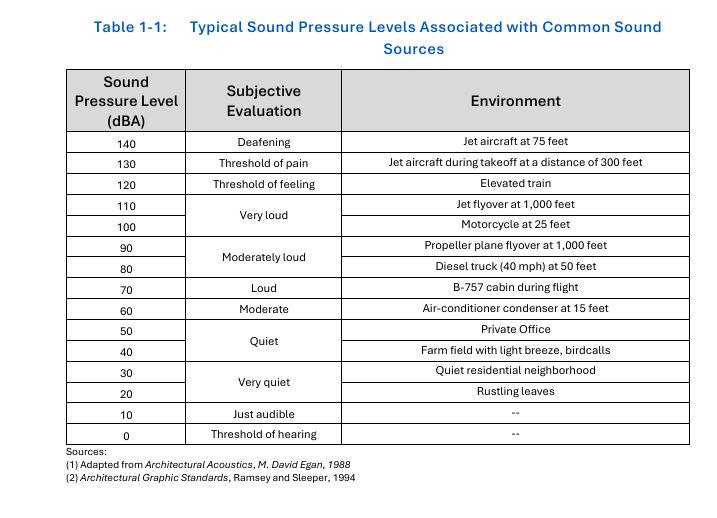 For context, a passing diesel truck at 50 feet measures 80 dBA, while a jet flyover can exceed 100 dBA. The RICE facility operates far below these thresholds.