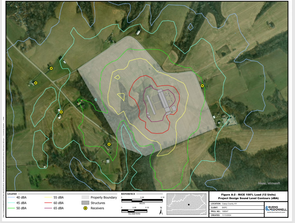 East Kentucky Power Cooperative (EKPC) has designed a 214 MW RICE facility on a 100 acre site in Casey County, KY. Though construction has not yet begun, detailed design and modeling work show how such a plant can fit within a modest footprint while keeping sound levels extremely low at the property line.